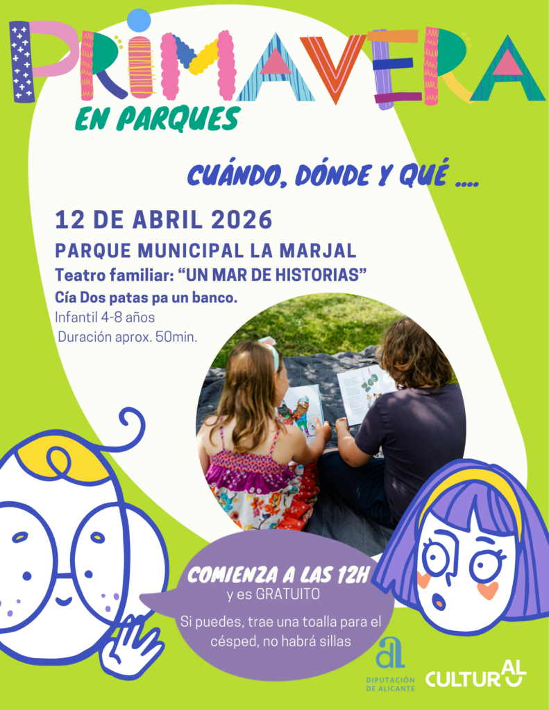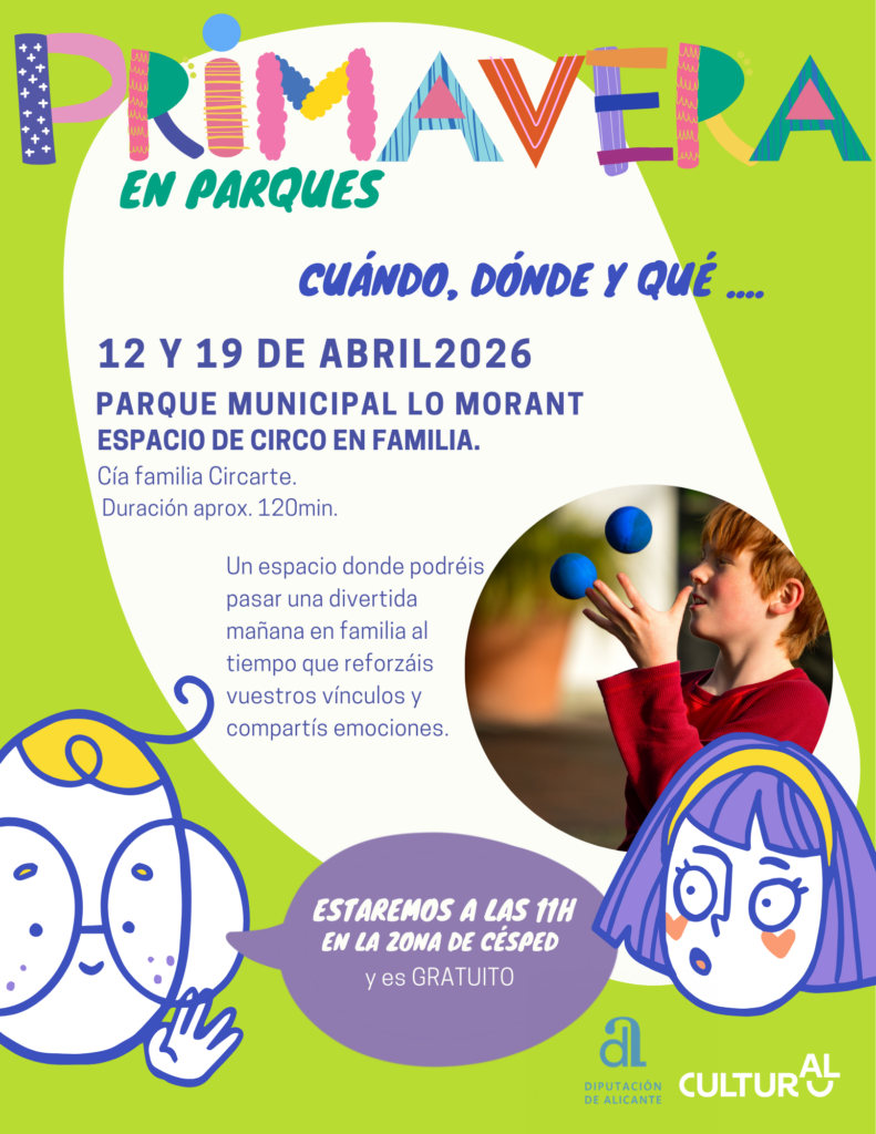 Este mes de abril, los parques de nuestra ciudad se llenan de magia, risas y actividades al aire libre con el ciclo “Primavera en Parques”. Una propuesta ideal de la Diputación de Alicante para disfrutar en familia de mañanas inolvidables rodeados de naturaleza.