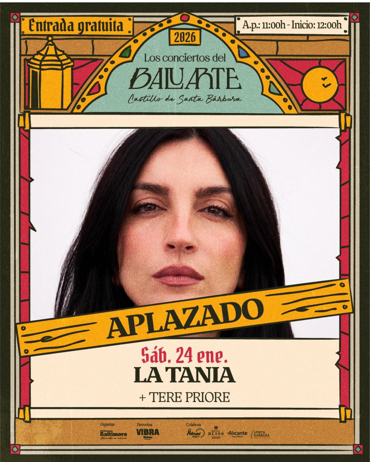 Debido a la alerta amarilla decretada el pasado jueves por fuertes rachas de viento y el consiguiente cierre del Castillo, el concierto de La Tania y Tere Priore se aplaza, al no poder montarse las infraestructuras a tiempo. Próximamente se avisará de la nueva fecha.